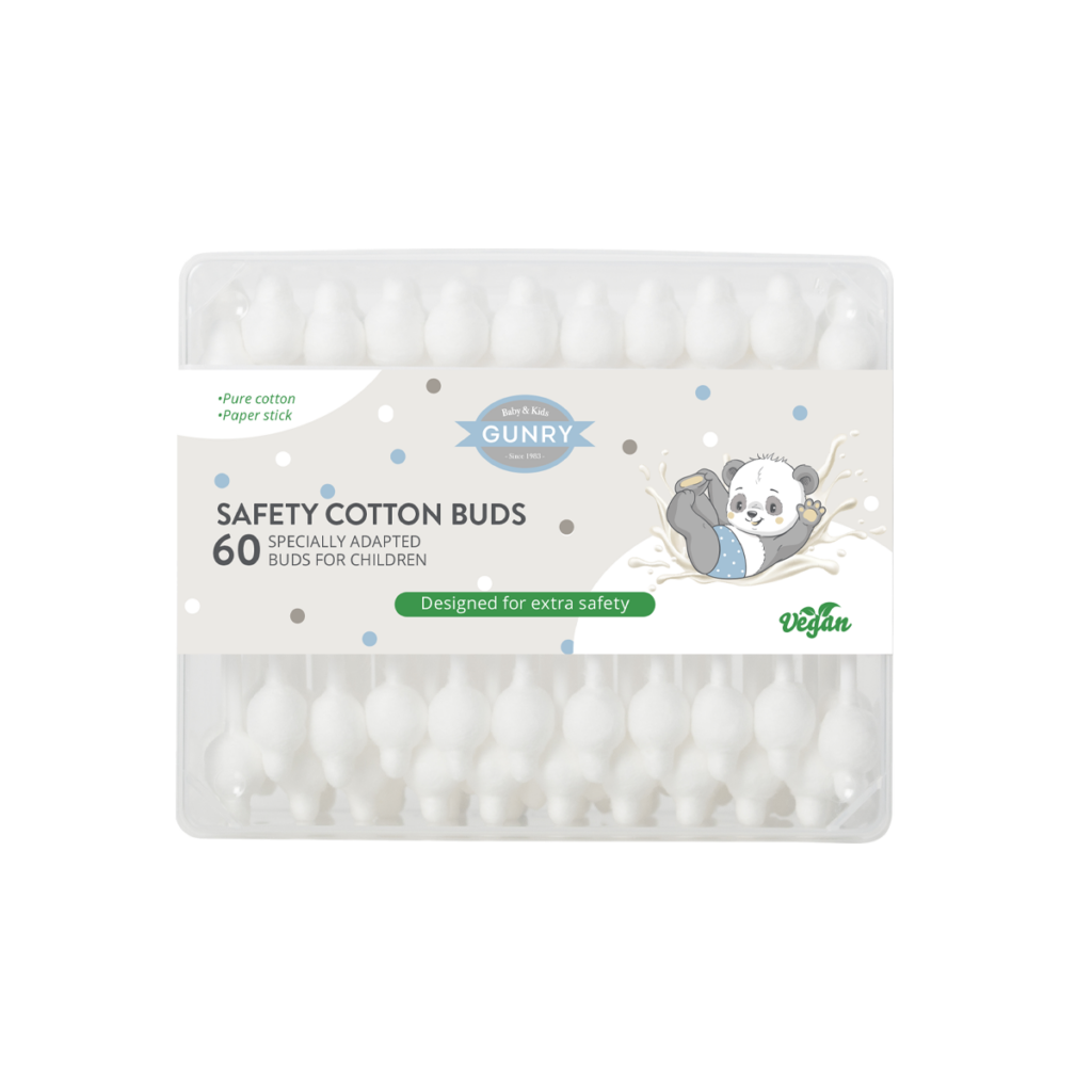 Gunry Baby Bomullspinnar är utformade för att vara extra säkra vid rengöring av till exempel bebisens navel och örats yttre delar.