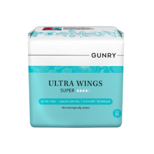 Gunry Ultra Wings Night har skyddande vingar för en säker och god nattsömn. Högabsorberande teknik ger en jämn distribution av vätskan och Quick-dry tekniken kapslar in både vätskan och lukten och ger en torr känsla under hela natten. Bindan är ännu lite längre baktill och passar vid mycket riklig menstruation.
