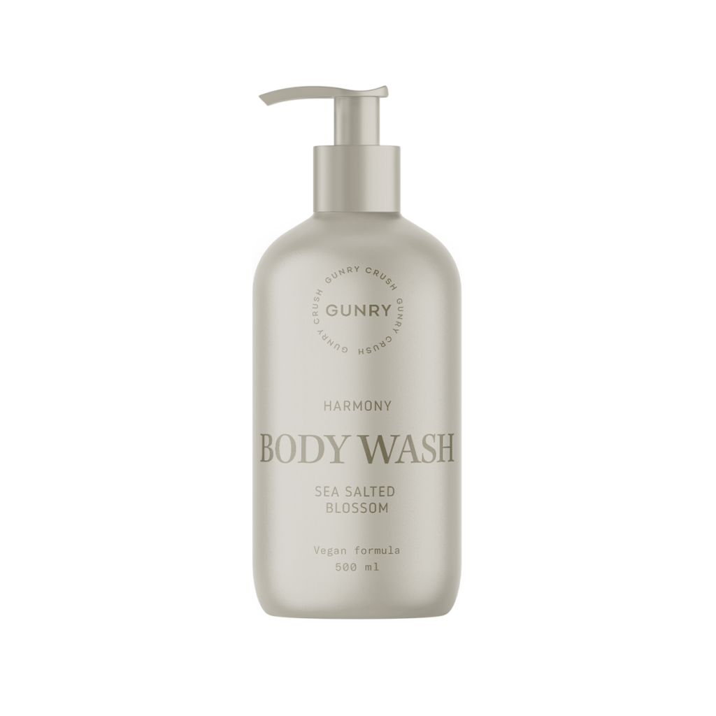Crush body wash Harmony från Gunry är en mild och återfuktande kroppstvål, berikad med glycerin som gör huden mjuk och len. Doftnoterna av vita blommor, havssalt och träiga noter hjälper dig att hitta harmoni i dina dagliga skönhetsrutiner. Den innehåller exklusiva parfymer från ett franskt parfymhus, är vegansk och dermatologiskt testad. Volym: 500ml.