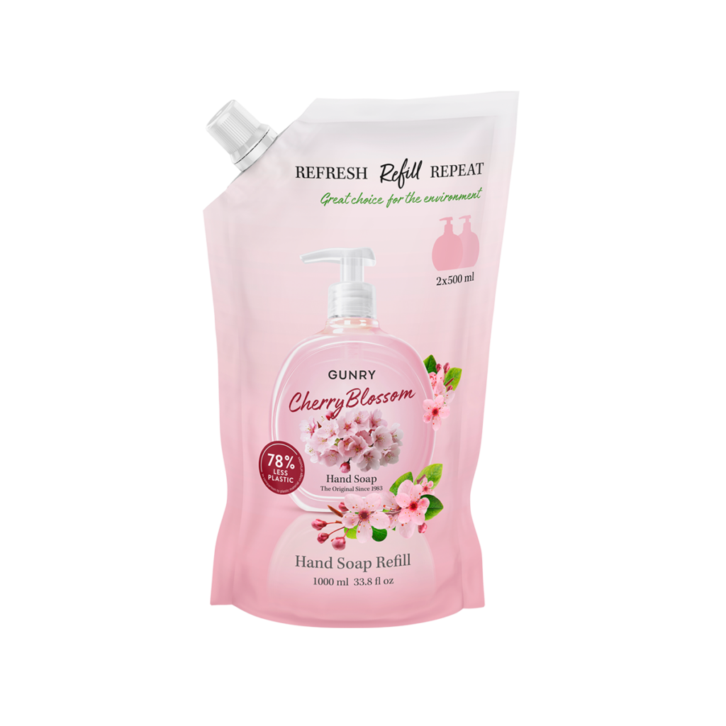 Original Cherry Blossom är den klassiska handtvålen från Gunry i en stor refillförpackning. Den har en frisk doft av körsbär och lämnar huden ren och väldoftande. Tvålen är vegansk, fri från mikroplaster och dermatologiskt testad.