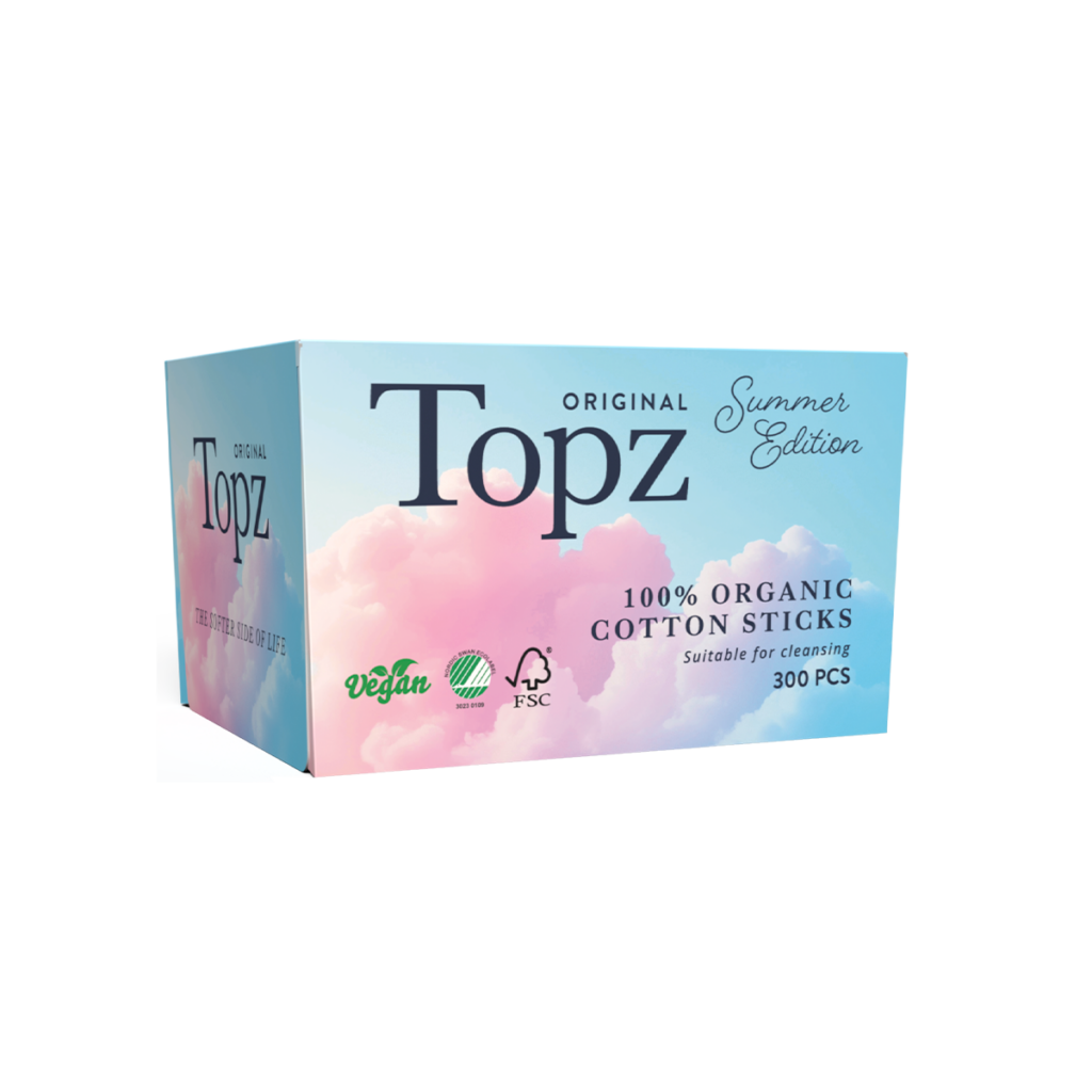 Topz Premium Bomullspinnar är högkvalitativa bomullspinnar tillverkade i 100% ekologisk bomull. De är perfekta för skonsam sminkborttagning och korrigering av smink. Förpackningen och pinnarna är tillverkade av FSC-certifierat papper och är biologiskt nedbrytbara. Ett hållbart och miljövänligt val.